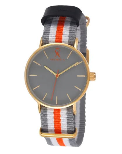 Grijs/wit/oranje nylon horloge - D.36 mm