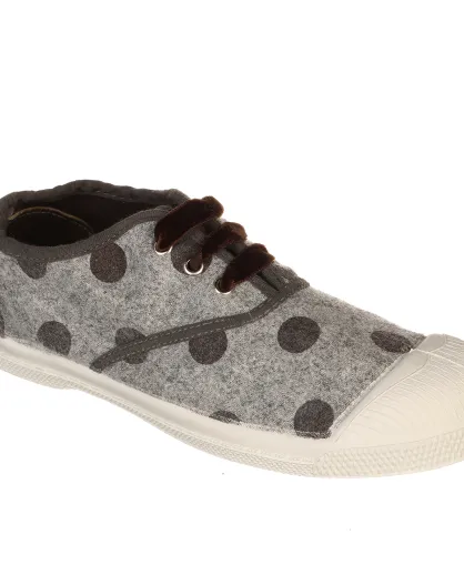 Tennisbas Flaneldots grijs/bruine fluwelen veters