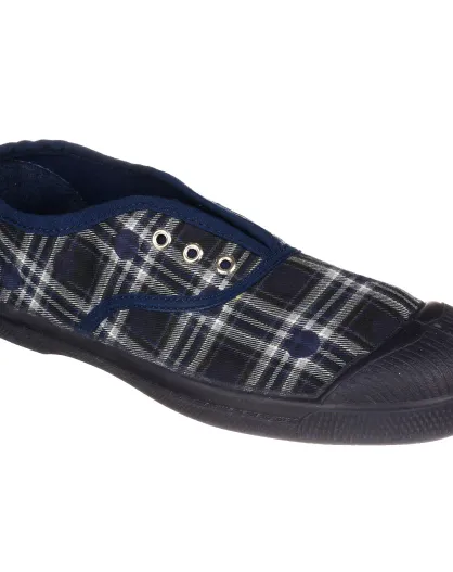 Lage sneakers van Elly Tartan donkergrijs/marineblauw met elastische stippen