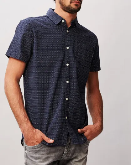 Marineblauw slim shirt met print