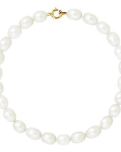 Rijstarmband Geelgoud Witte Zoetwaterparels