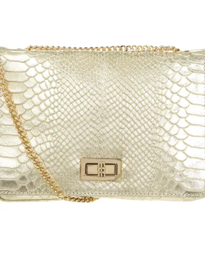 Gouden schoudertas van armadillo leer - 21x15x6 cm