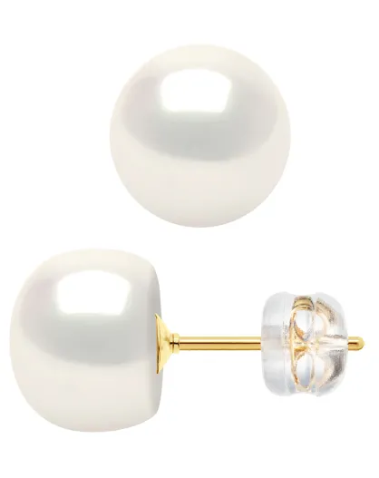 Florence geelgouden en natuurlijke witte zoetwaterpareloorbellen