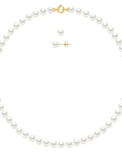 Set van geelgoud en natuurlijke witte zoetwaterparels en natuurlijke witte zoetwaterparels