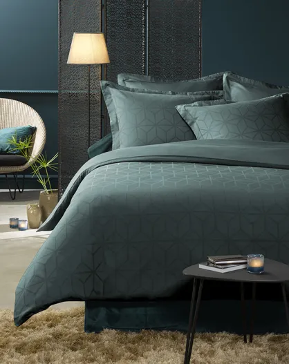 Dekbedovertrekset en 2 kussenslopen 100% katoensatijn Skyscraper atlantic/donkergroen - 200x200 cm