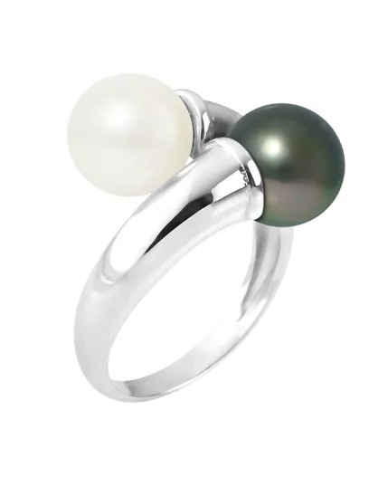 Toi & Moi Prestige zilveren ring Tahitiaanse gekweekte parels en zoetwaterparels wit naturel/groen