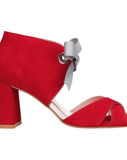 Movie Star rode fluwelen leren sandalen met hak van 8 cm