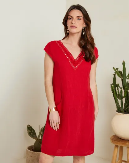 Rode jurk van 100% linnen Elina