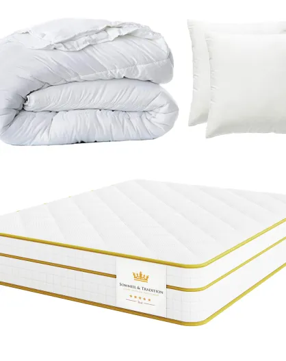Matrassenset + 1 dekbed + 2 Magellan kussens wit/geel - 140x190 cm