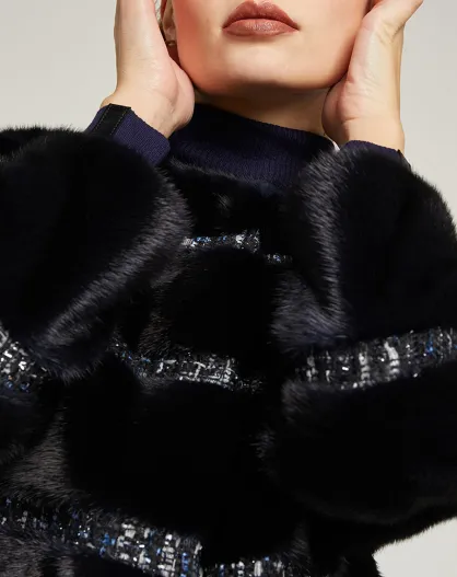 Marineblauwe nertsbontjas met voering van rifzijde