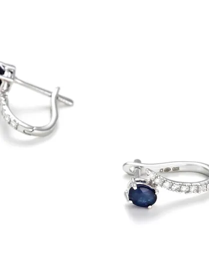 Mooie saffieroorbellen, diamanten 0.1ct en saffieren 0.35ct witgoud