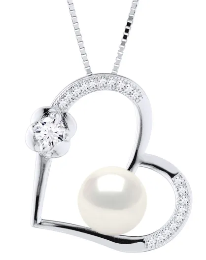 Venetiaanse kettingketting met hartpatroon, gekweekte zoetwaterparel, zilveren knoop