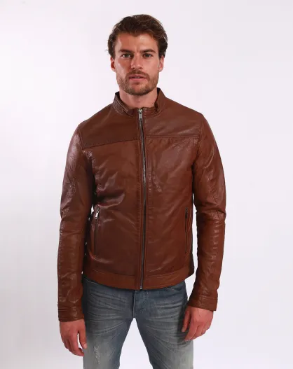 Camelkleurige leren jas Lyandro