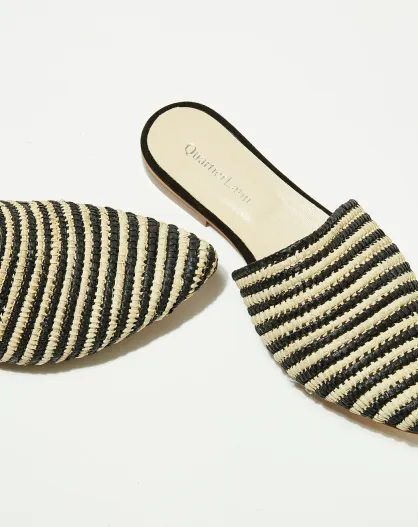 Zwart/natuurlijke raffia-muiltjes