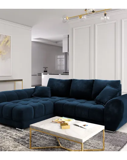 Omvormbare fluwelen hoekbank met opbergdoos Royal Blue Cloud - 285x192x92 cm