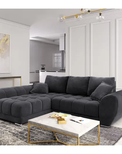 Converteerbare fluwelen linkerhoekbank met donkergrijze opbergdoos in de cloud - 285x192x92 cm