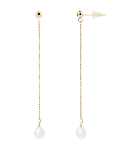 Geelgouden oorbellen met zoetwaterparels en witte peer