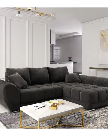 Fluwelen converteerbare hoekbank rechts met opbergbox Donkerbruin Nuage - 285x192x92 cm