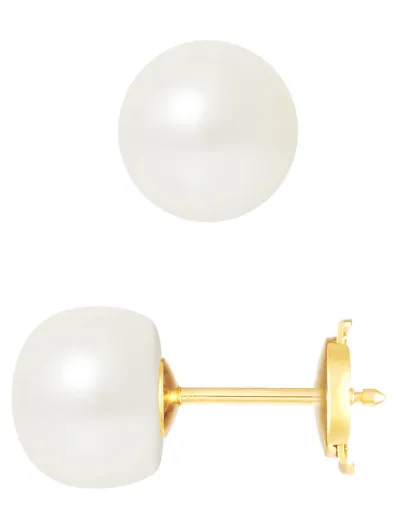 Prestige oorknopjes in geelgoud en zoetwaterparels met natuurlijke witte knopen Ø 8-9 mm