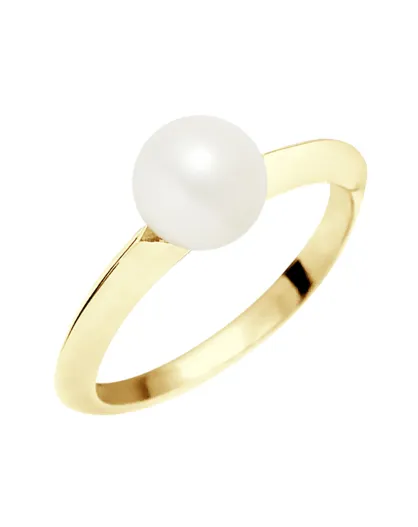 Geelgouden solitairering en natuurlijke witte ronde zoetwaterparel