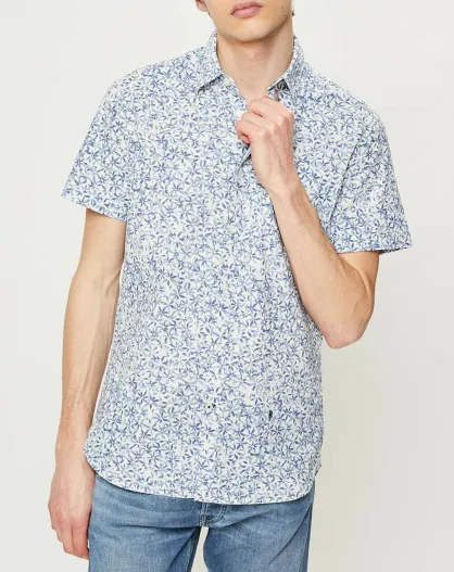 Wit/blauw overhemd met Liam getailleerd patroon