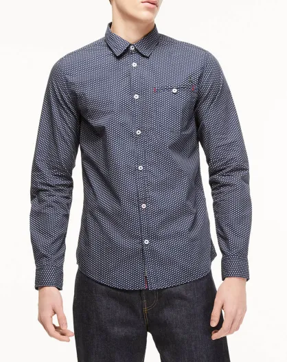 Caty overhemd met normale pasvorm en micromarineblauwe patronen