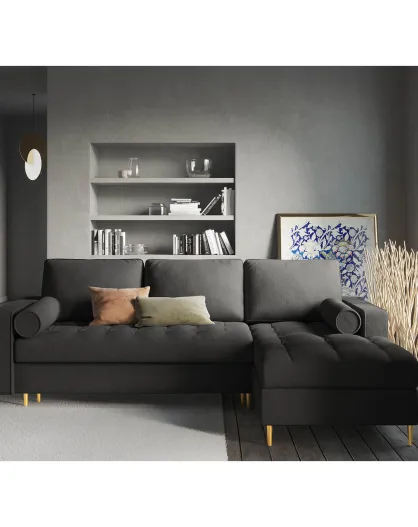 Santo 5-zits converteerbare hoekbank rechts met opbergbox donkergrijs - 240x175x96 cm