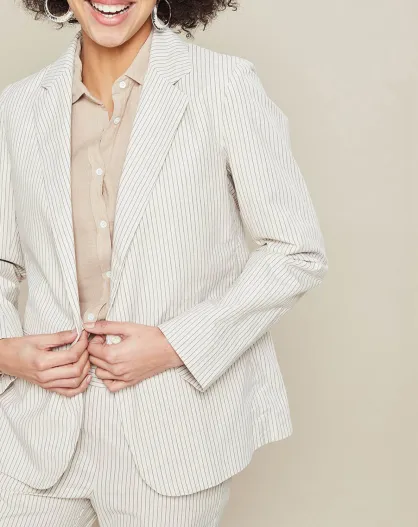 Blauw/beige gestreepte blazer Virna