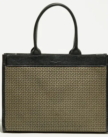 Nina kaki/zwarte leren draagtas - 37x27x12 cm