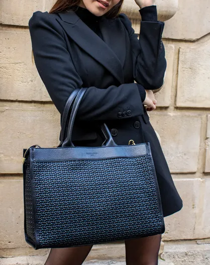 Nina zwarte geweven leren draagtas - 37x27x12 cm