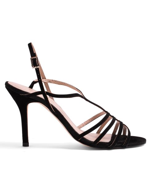 Carilo zwarte fluwelen leren sandalen - hak van 8 cm