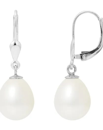 Witgouden en natuurlijke zoetwaterpareloorbellen met witte peer