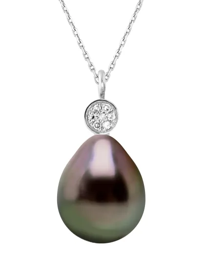 Prestige halsketting in witgoud, 0.02 ct diamanten en Tahitiaanse perenparel