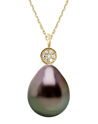 Prestige halsketting in geelgoud, 0.02 ct diamanten en Tahitiaanse perenparel