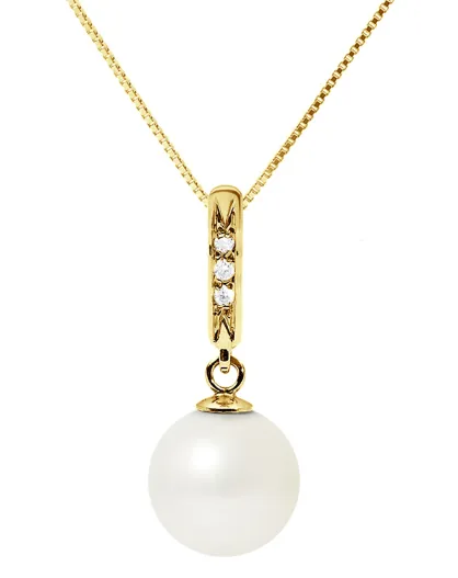Prestige halsketting in geelgoud, 0.03 ct diamanten en natuurlijke witte ronde zoetwaterparel