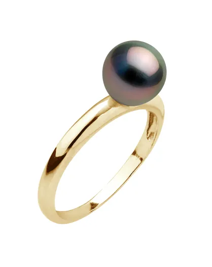 Geelgouden en ronde Tahitiaanse parelring