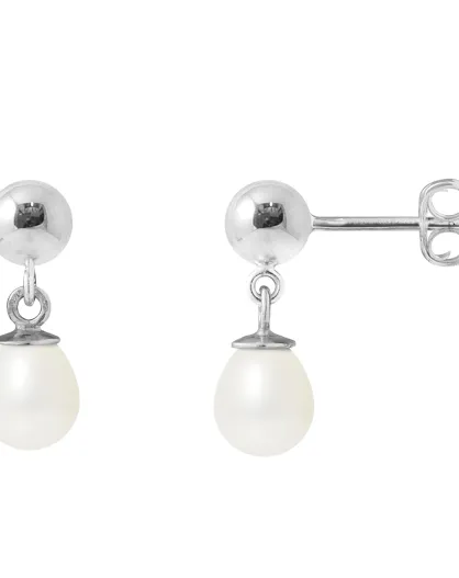 Gerhodineerde zilveren oorbellen met natuurlijke zoetwaterparels van witte peer