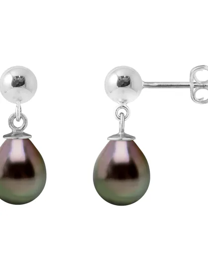 Oorbellen in gerhodineerd zilver met tahitiaanse peerparels