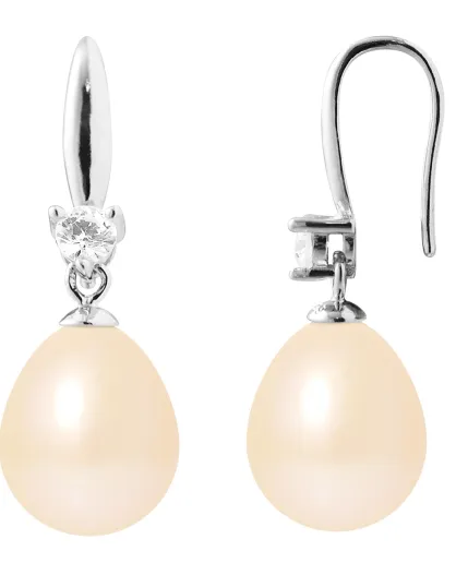 Oorbellen van natuurlijk roze peerzilver, zirkonia en zoetwaterparels