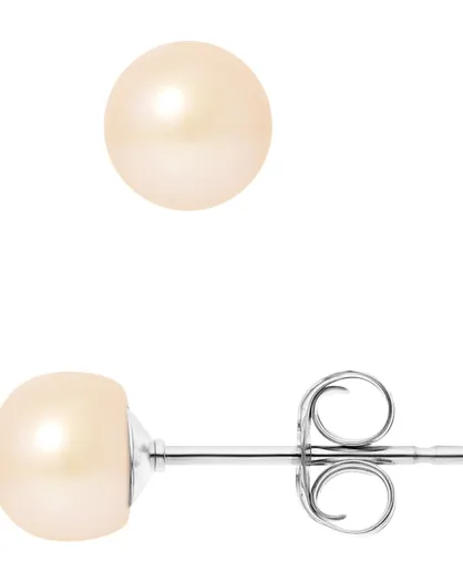 Pareloorbellen van gerhodineerd zilver en zoetwater met natuurlijke roze knopen Ø 6-7 mm