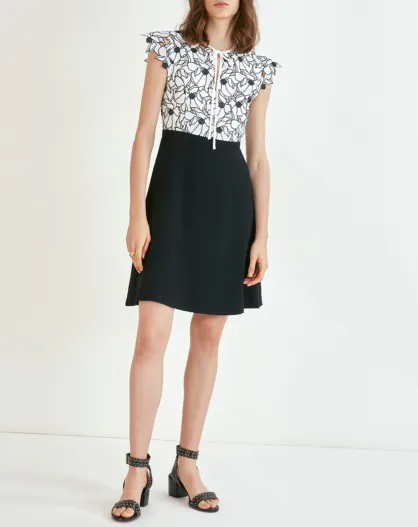 Doorzichtige zwart/witte geborduurde jurk