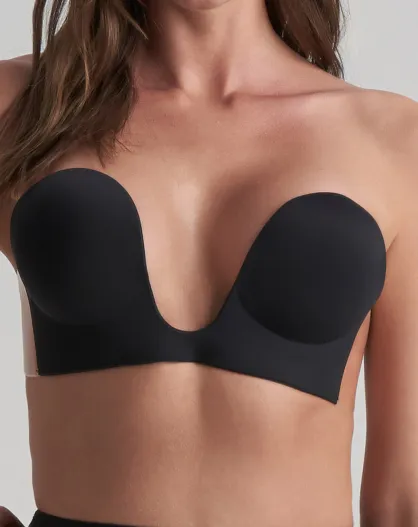 Zwarte naadloze zelfklevende bh met U-hals