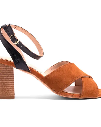 Sandales en Velours de Cuir Lola camel - Talon 8 cm