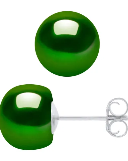 Pareloorbellen in zilver en zoetwater met malachietgroene knopen Ø 8-9 mm