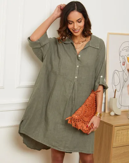 Estelle kaki jurk van 100% linnen