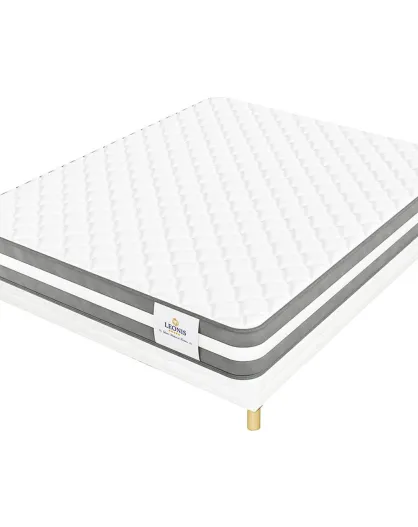 Leon matras + boxspringset grijs/wit - 140x190 cm