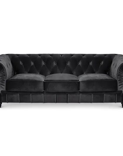 Grote 3-zitsbank Chesterfield zwart fluweel - 209x82x72 cm