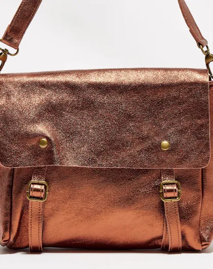 Bronze Nyle leren schoudertas - 25x27x3 cm