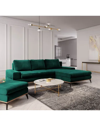 Astre 5-zits converteerbare fluwelen hoekbank rechts met opbergdoos flesgroen - 315x212x87 cm
