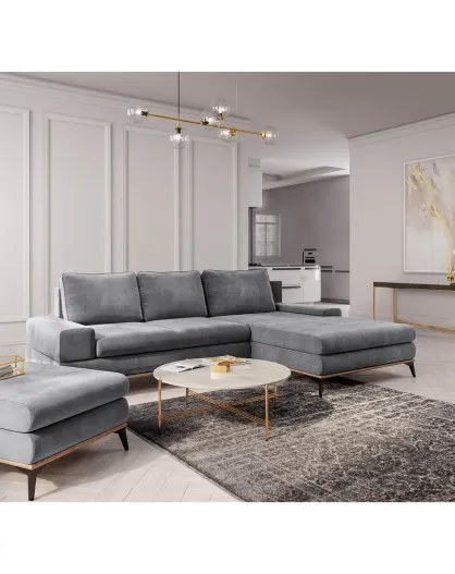 Astre 5-zits grijze converteerbare fluwelen hoekbank rechts met opbergbox - 315x212x87 cm